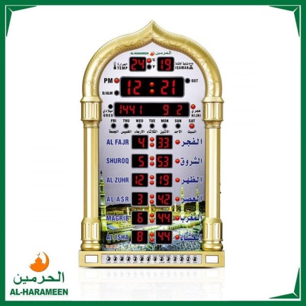 - تعمل بمحول كهربائي مرفق مع الساعة -أرقام رقمية حمراء مضيئة الأذان كـاملا للصلوات الخمـس