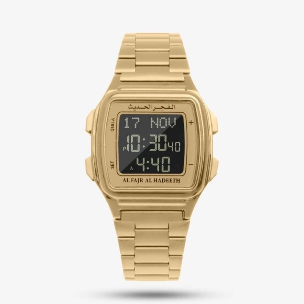ساعة الفجر الحديث سنقل مصنوعة من الستانلس ستيل باللون الفضي وشاشة بيضاء