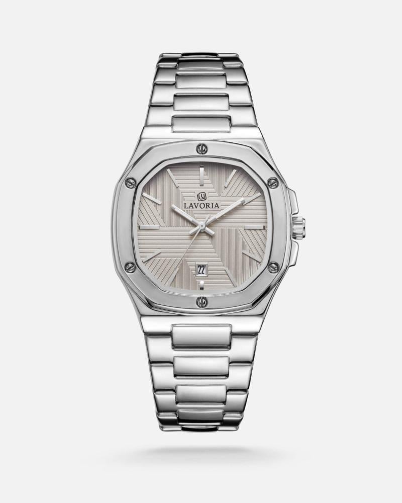 ساعه فخمه ماركه لافوريا الرجالية بالفضي والبيج هي خيارك المثالي لأن تصميمها العصري المصنوع من الصلب الفضي يضفي لمسة فخمة على معصمك، واللمعة الثابتة تخليها جذابة بكل مناسبة. احصل عليه الآن من متجر ساعات دانتي - DANTE