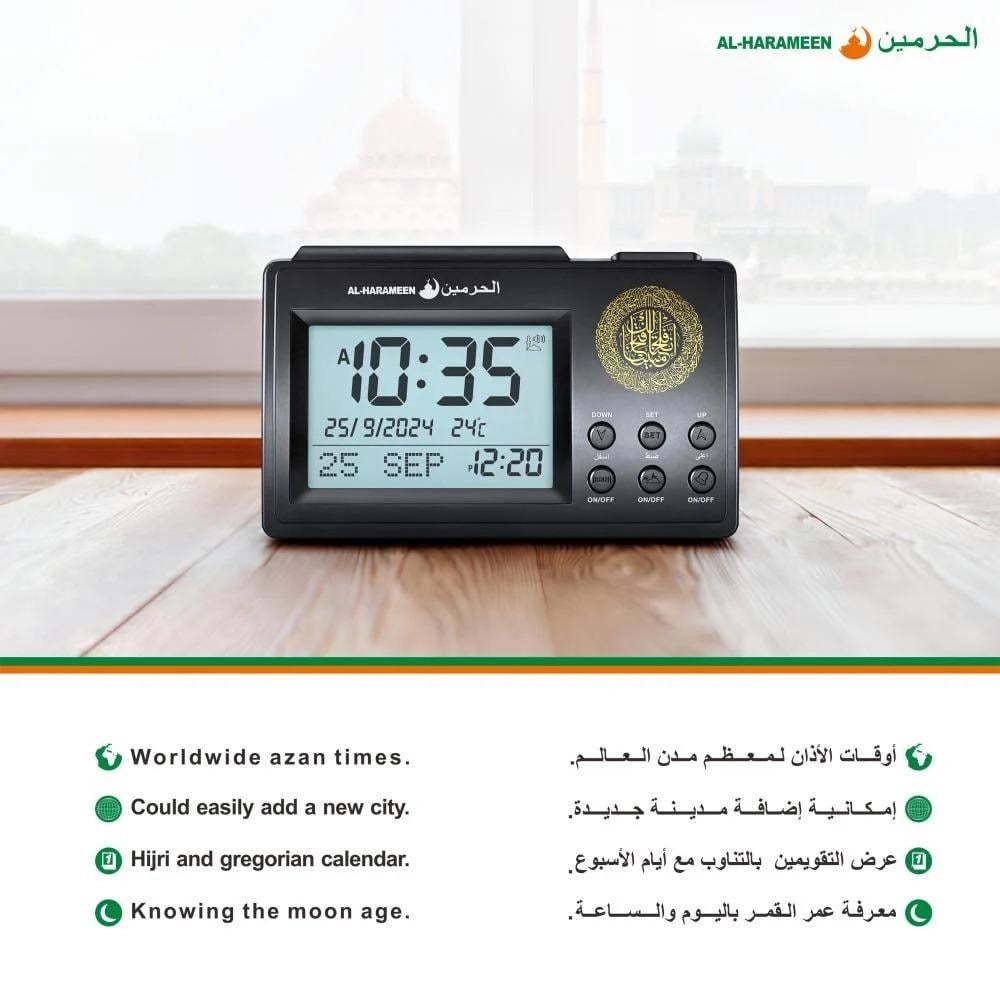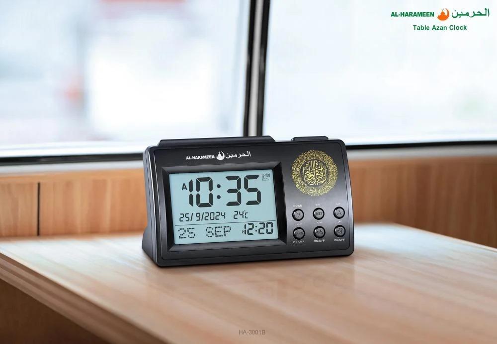 ساعة مكتبية ذات تصميم حديث تساعدك على متابعة أوقات الصلاة بدقة مع ميزات متقدمة تناسب جميع المستخدمين